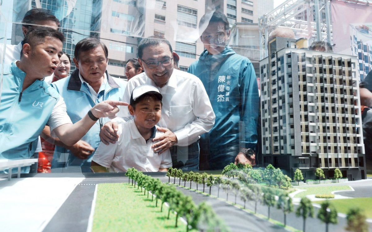 圖/侯友宜攜幼童一起期盼「淡水海天段青年社會住宅」完工。(新北市政府城鄉發展局提供)