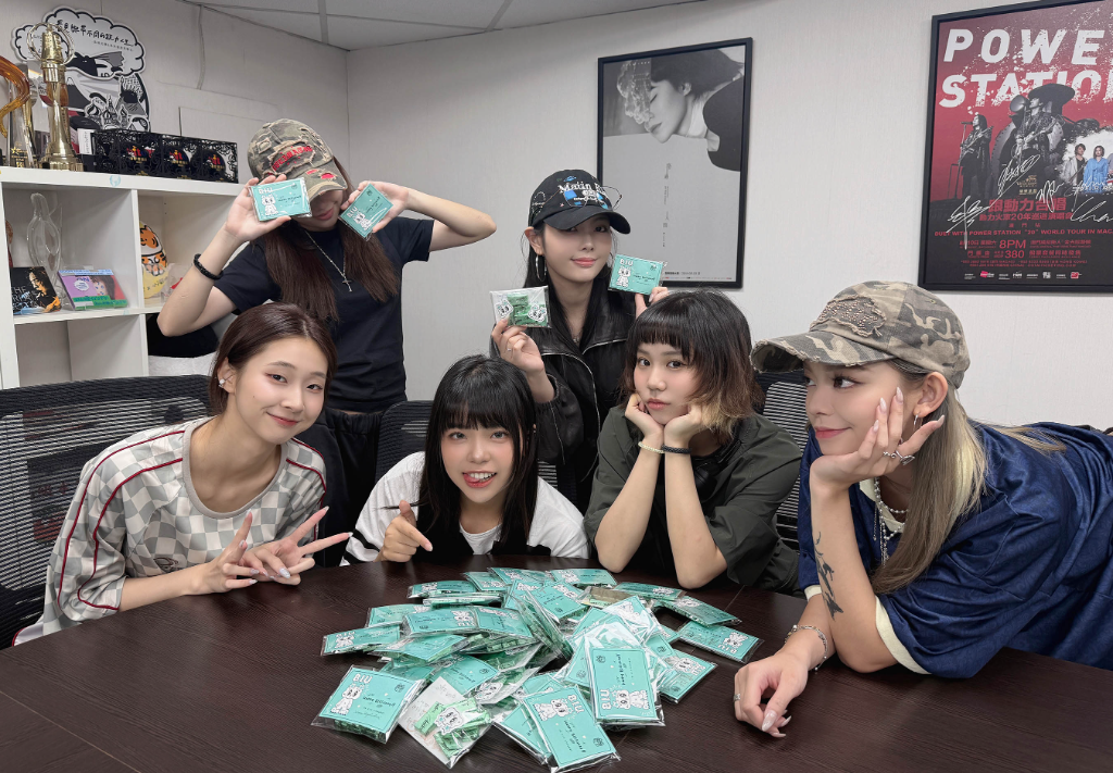 現場另一大亮點是成員親手準備的薄荷巧克力與手寫卡片,共計66份,早早被搶光。丞妘分享:「我發禮物的方式是轉圈圈隨便指人,有一個小妹妹太可愛,我直接送給她!」栩栩還特別畫了蝴蝶貓貓,vikky則把中英法語寫滿,笑稱「大家說我的字像小學生」。