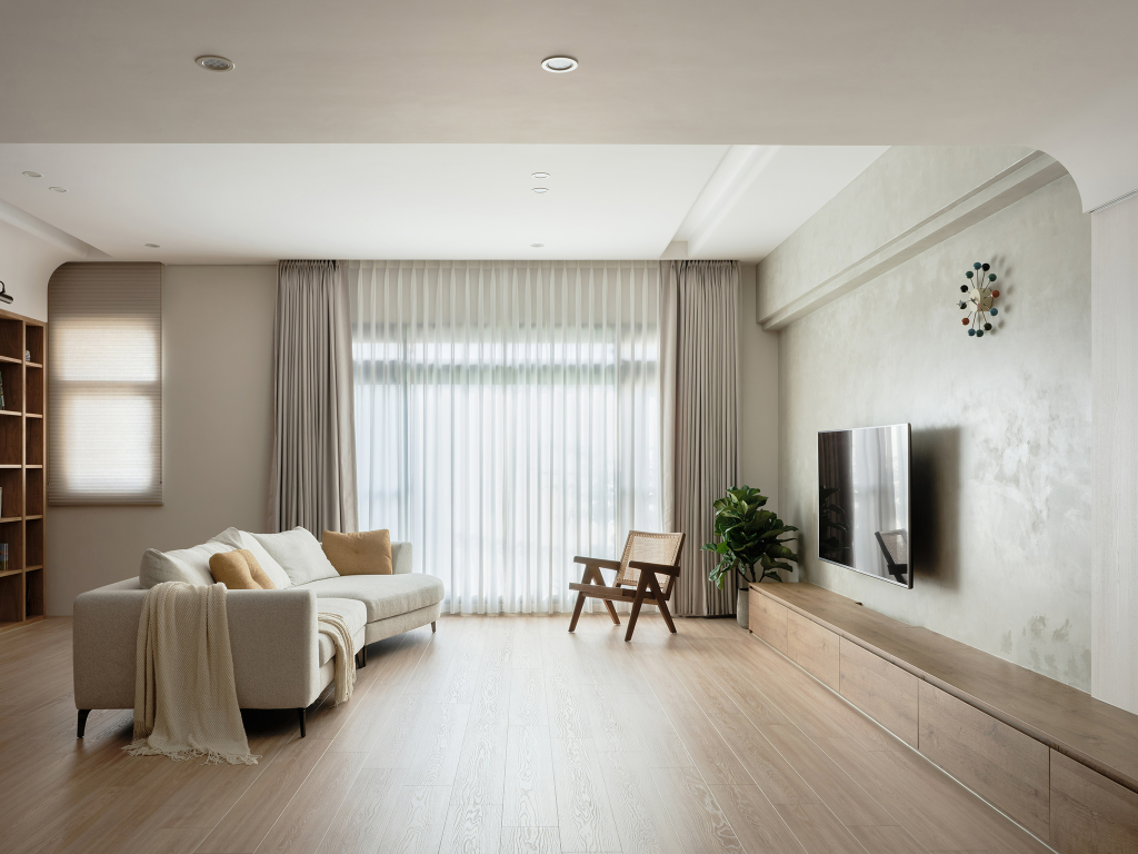 歷經嚴峻的疫情時期,「居家辦公」變成現代人新的工作常態,「家」也成了工作、生活及家人相互交流的重要場所,人們對於居家生活健康與居住品質也變得更加重視。在本案翻新的過程中,團隊導入有機設計(Organic Design),從運用弧形、木作等元素,再到重整空間格局與動線以引入自然光景與綠意,成功為居所營造通透舒適的空間氛圍。同時,依循「以人為本」的原則,為居者規劃完善、適切的機能場域,給予居者最優質的生活體驗。