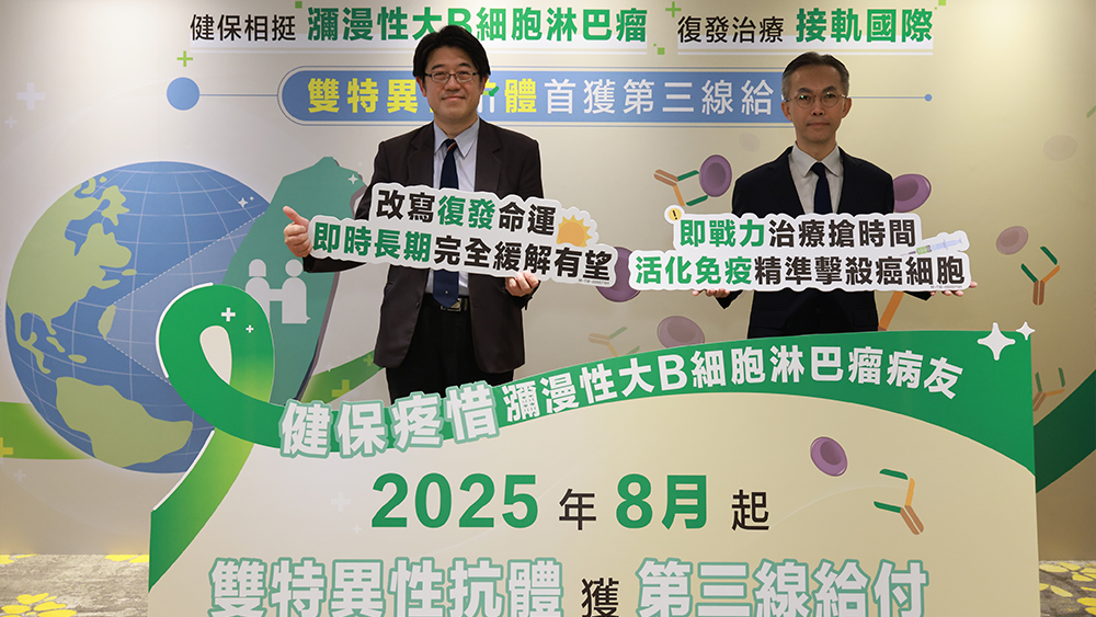 中華民國血液病學會黃泰中秘書長表示,雙特異性抗體藥物為癌症治療領域備受矚目之突破性新藥,依2025年美國國家癌症資訊網(National Cancer Comprehensive Network)最新瀰漫性大B細胞淋巴瘤治療指引所載,本次獲得給付之