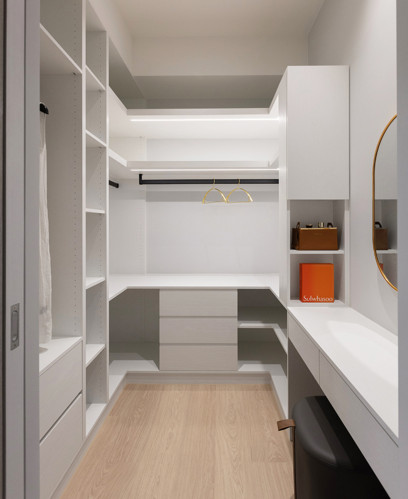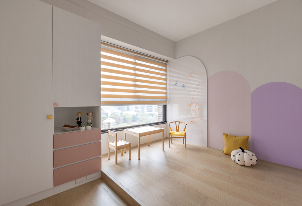 業主一家對於空間細節表達高度肯定,尤其是許多未曾預料的貼心設計,如冰箱旁額外規劃的果汁機收納位、便於塗鴉與學習的磁吸牆面、以及適合收藏與展示的藝術擺設空間,皆讓日常生活更為順手與舒心。屋主表示,整體氛圍與自身的藝術品味自然融合,不僅美觀,更在細節中感受到設計師的用心與理解。