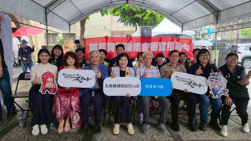 ▲ 《東離來風》雲林特展記者會在今日(8月26日)登場,眾多貴賓親臨。前排由左至右分別為:雲林縣文化觀光處長陳璧君、霹靂國際多媒體營運長劉麗惠、霹靂國際多媒體董事長黃文章、雲林縣長張麗善、雲林縣府首席顧問黃逢時、縣政總顧問張清良及議員黃美瑤。(圖:霹靂國際多媒體)
