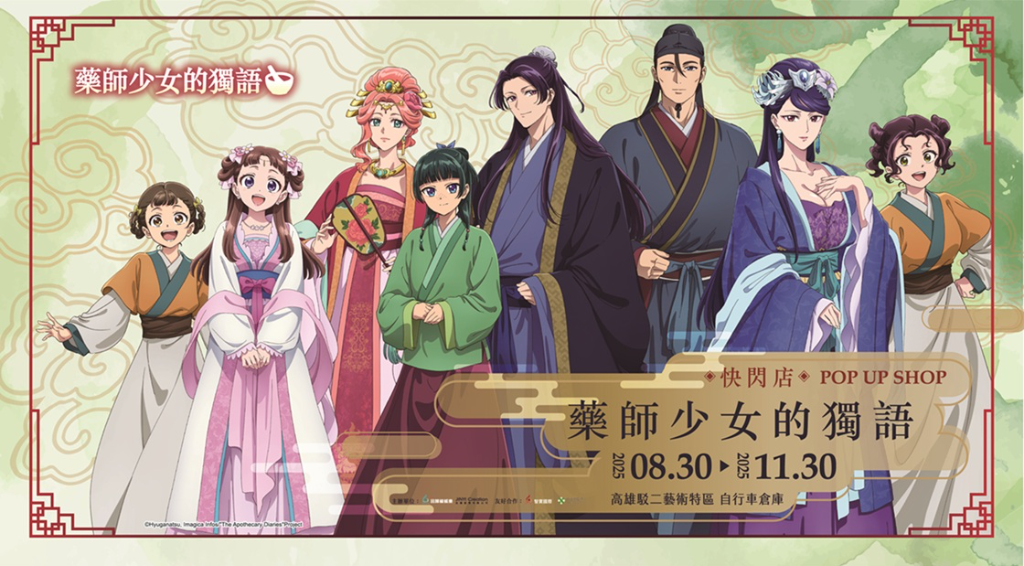 《藥師少女的獨語》快閃店將於8月30日至11月30日在高雄駁二特區自行車倉庫登場。這場結合沉浸式展區與獨家限定周邊的盛會,無論是忠實觀眾還是初次接觸的朋友,都能在其中感受到《藥師少女的獨語》獨有的魅力,絕對不能錯過這場與《藥師少女的獨語》的宮廷之約。
