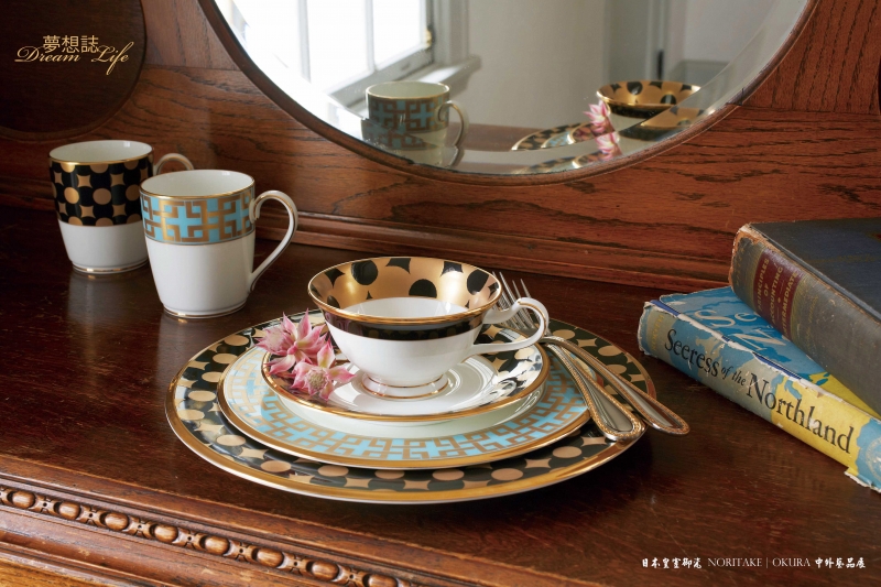 Noritake為承襲日本優良傳統,力求把日本的好傳遞到全世界,跨界與唐紙品牌 雲母唐長合作,推出「永恆歲月」、「星光大道」等系列,翻玩百年經典圖騰,體現餐瓷生活藝術。雲母唐長自江戶時代開始,以製造屏風紙起家,至今已有400年歷史,首度與Noritake跨界合作,將歷時百年的經典圖紋搭配柔和彩度呈現,象徵幸福俯拾即是。無獨有偶,Noritake今年以質地更為細緻、色澤更柔和的「淨白瓷」製作優美富日式典雅風格的「花鳥譜」系列,亦將首度於中外藝品展亮相。