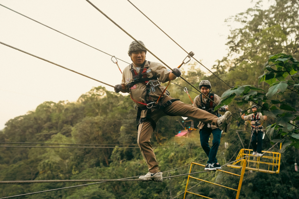 ▲ 瓜哥陸戰隊出身沒在怕,高空鋼索上跳舞超淡定。(圖:客家電視)