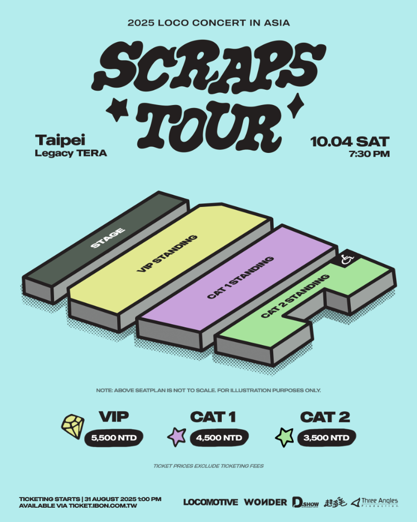 票價從NTD 3,500至NTD 5,500,門票將於2025年8月31日下午1點於ibon售票網站ticket.ibon.com.tw開賣。走進Loco的音樂世界,度過一個永生難忘的夜晚吧!
