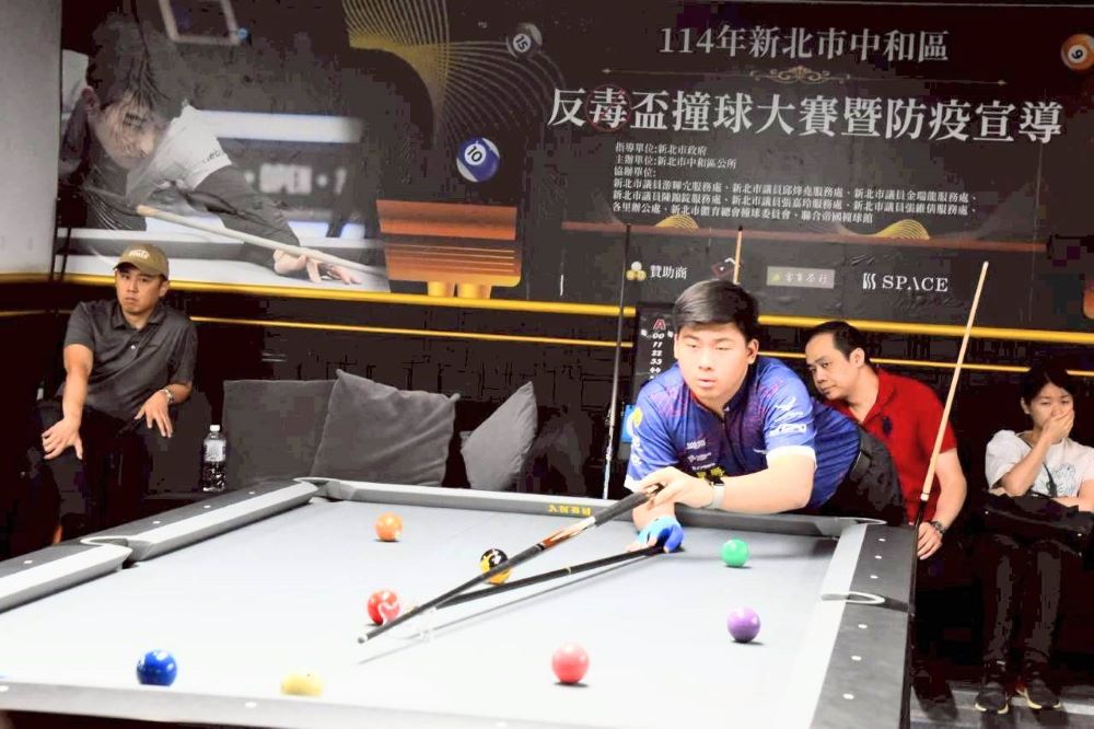 【民眾新聞葉柏成新北報導】114年中和區「反毒盃撞球錦標賽」決賽今〈31〉日開打,將一路廝殺至深夜,預計在凌晨12點落幕,為5天激烈賽事畫下精彩句點。
