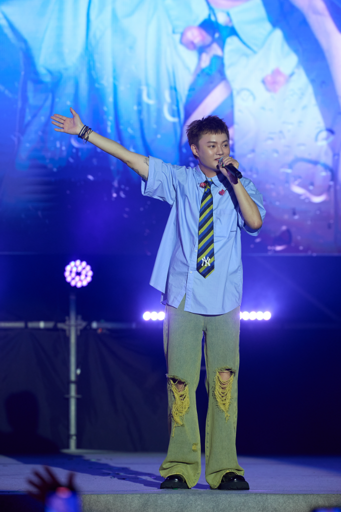 來自小琉球的他說:「澎湖跟我的家鄉一樣四面環海,所以來澎湖就有種回家演唱的感覺,特別親切。」但也戲稱澎湖的風每次都大到讓他連走路都像在拍動作片:「在澎湖演出,跟其他地方最大不同就是海風加持,別的地方頂多有冷氣風,澎湖是天然海風來伴舞,想不帥都難。」最後他以自己的新歌〈跍落爬起〉邀請大家跟著他「跍落(蹲下)、爬起(起立)」,結束這晚歌聲實力、氣氛逗趣的演出。