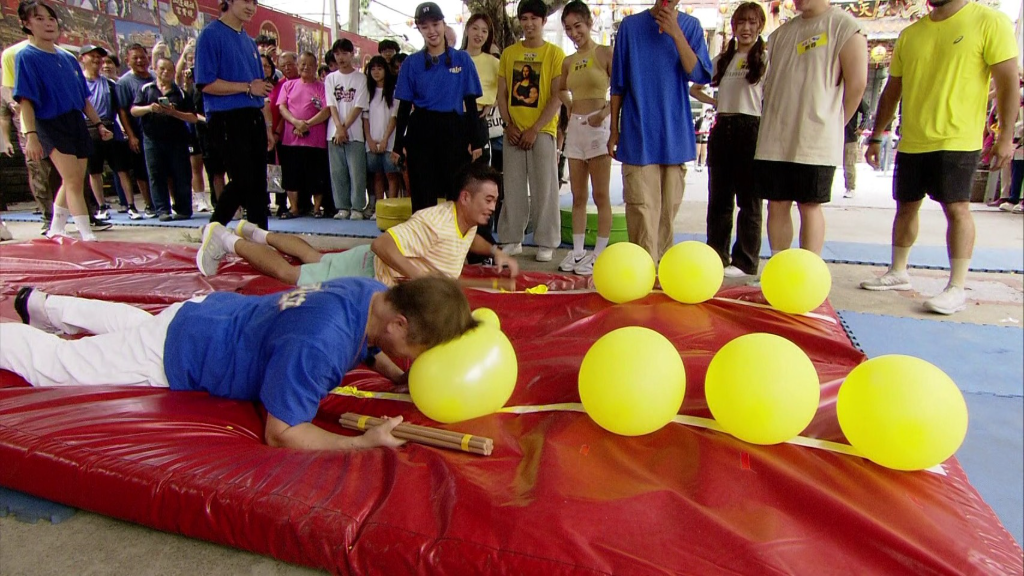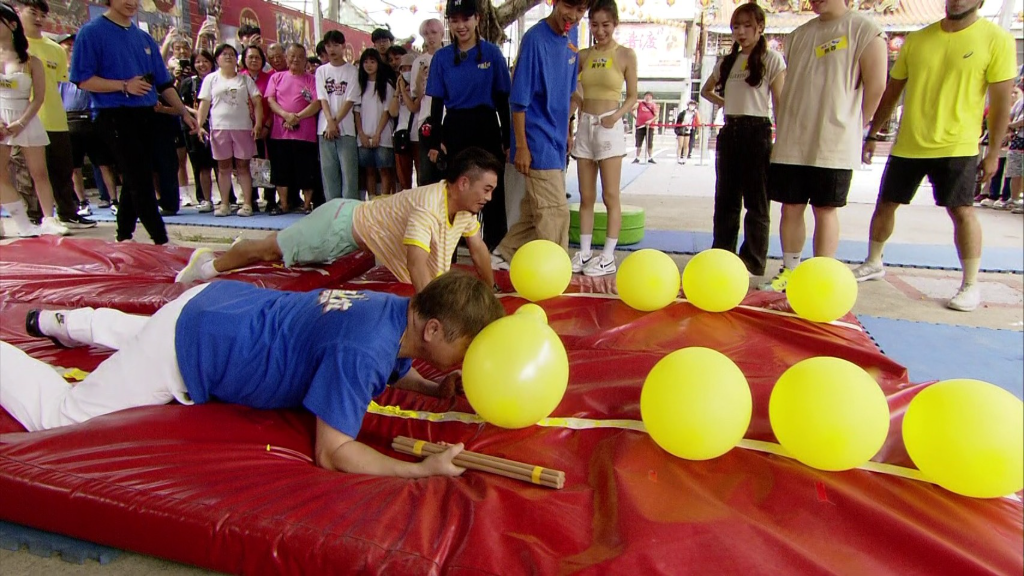 ▲ 馬國弼身為鐵人三項選手輕鬆完成挑戰,但胡瓜一路破氣球時氣喘吁吁。(圖:民視)