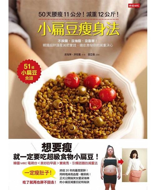 嘗試過各種減肥法卻沒有一次成功的她,因參加電視台實境秀,而開始小扁豆減肥日記,50天成功減重12KG,本書公開50日的小扁豆減重祕訣,並公開吃不胖又簡單美味的51道低熱量小扁豆減肥食譜,還有料理TIPS,讓你有得吃又有得瘦!