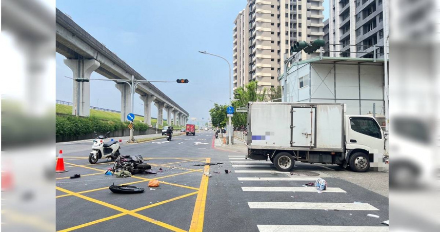 警方表示,涉事貨車駕駛為22歲袁姓男子,雙方酒測值仍待檢測確認。初步了解,袁男駕車沿水漾路欲左轉進入大有街時,與直行往蘆洲方向的林姓騎士發生碰撞,導致其重傷倒地。