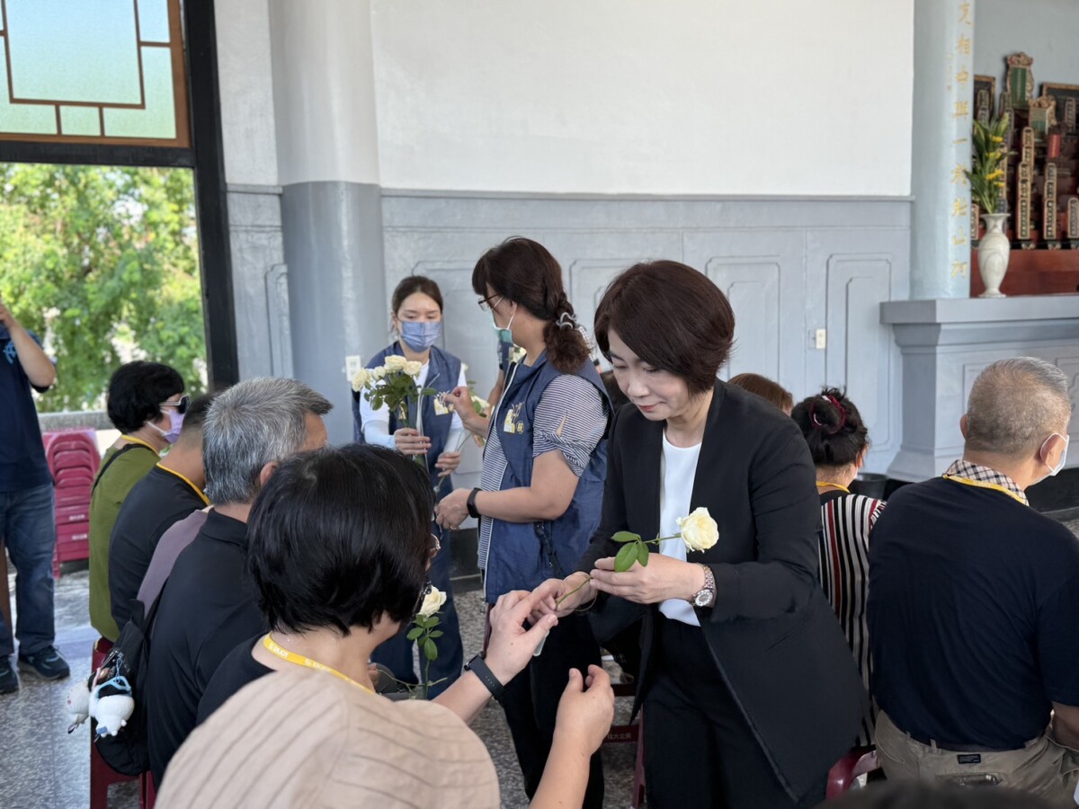 ▲縣長周春米逐一致意烈士遺族代表,獻上象徵純潔與祝福的白玫瑰,表達追思與慰問。