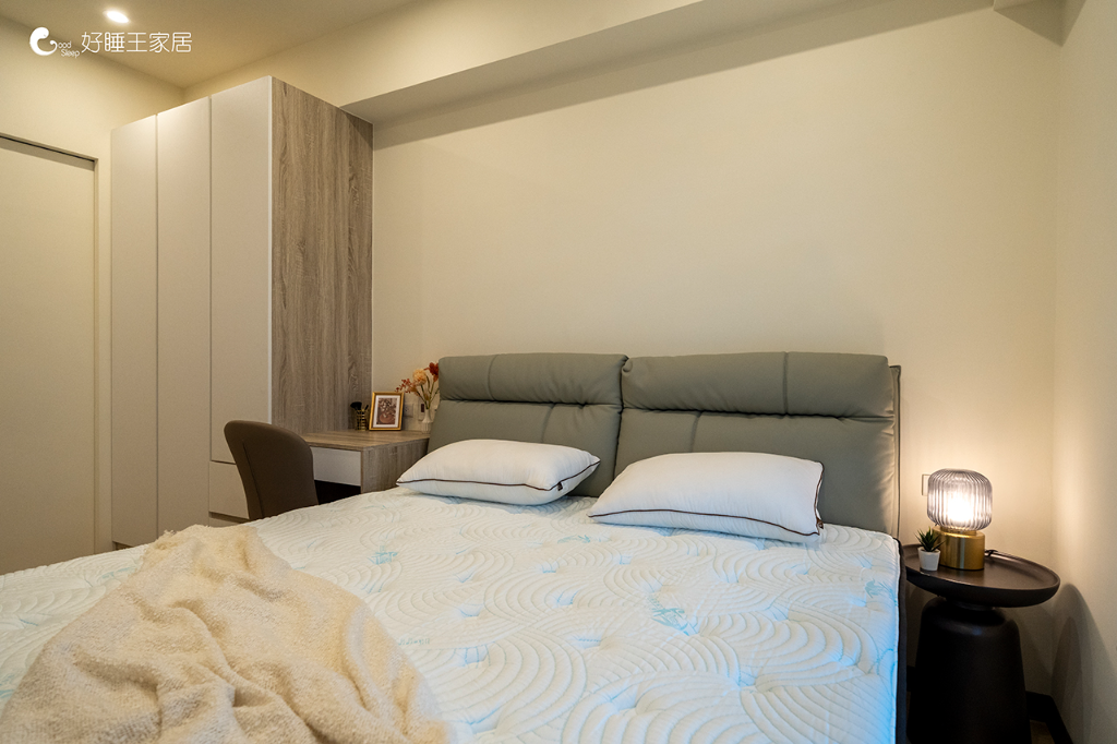 好睡王家居以義式美學與實用設計為核心,推出多款臥室產品,滿足不同需求。經典的「杜納韋Dunaway全皮掀床架×沙特萊Chatelet獨立筒床墊」組合,以俐落線條、親膚真皮與柔軟羽絨床頭打造高質感臥室,床架內建隱藏式掀床收納,沙特萊床墊則採涼感紗布、獨立筒結構穩定支撐,減少翻身干擾。