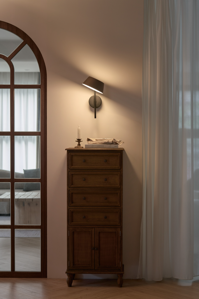 OLO系列則以簡約幾何語彙打造多元選擇。小巧靈活的「OLO W」、放大版「OLO XL W」、結合火炬意象的「OLO XL WU」,各自帶來不同比例與氛圍,均具備可旋轉、調光等靈活性,無論壁面、床頭或角落都能精準點亮,勾勒細膩的夜晚氛圍。「PAOPAO W泡泡」以圓潤玻璃與漸層電鍍呈現夢幻感,白天閃耀金屬光澤、夜晚散發柔光,是臥室裡的浪漫焦點。「WÚ日吾」則以簡潔的線條搭配橫向、縱向可調結構,既能下照閱讀、也能洗牆照明,柔和而靈動。SEEDDESIGN喜的燈飾的每一件作品,都是光影與美感之間的平衡,讓夜晚回歸溫柔、自在的節奏。