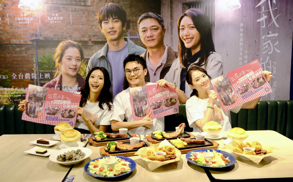 ▲電影《我家的事》(左)黃珮琪、導演潘客印與影后高伊玲今(4)日齊聚「瀧厚牛排民生店」,現場特別打造主視覺牆面、電影掛軸與專屬餐墊紙。(圖:瀧厚炙燒熟成牛排)