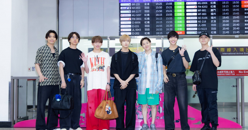 瀧澤秀明旗下子弟兵IMP.於2023年出道,今(6日)搭乘CI221班機於下午4點55分抵達松山機場。首次來台的他們,將於明日登上台北小巨蛋參加《2025 潮臺北J-POP NIGHT》演出,現場吸引逾300名PINKY.(粉絲暱稱)熱情接機。據悉,瀧澤秀明為了支持旗下男團,已低調提前訪台。