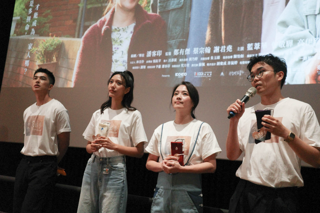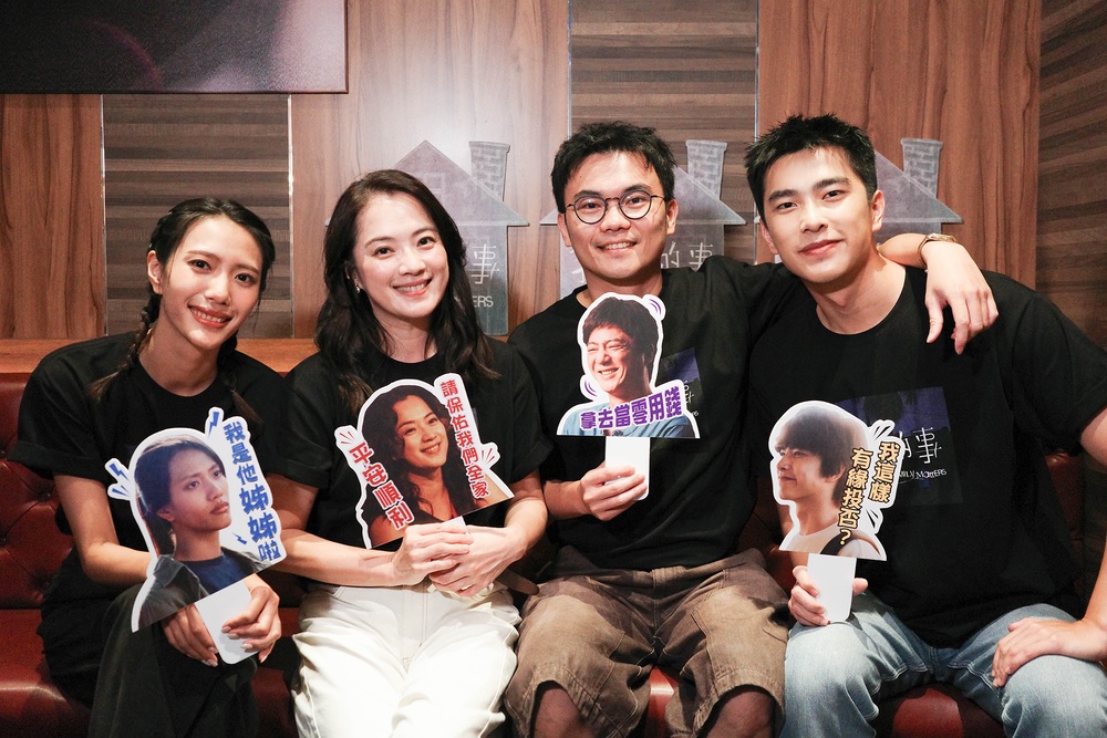 電影《我家的事》於昨(6)日、今(7)日,一連兩天舉辦「搶先Key恁兜」特別場活動,(右起)導演潘客印攜主創演員高伊玲、黃珮琪、曾敬驊北中南跑透透和觀眾相見歡。(圖:牽猴子)