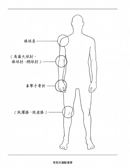 除此之外,還有因揮桿動作導致的肘內側發炎,俗稱「高爾夫球肘」的「肱骨內上髁炎」,用拳頭高速擊打硬物導致的掌骨(手部骨骼中間的部分)骨折、「拳擊手骨折」,跑步引起的膝關節周圍受損的「跑者膝」,打排球或籃球時因為不斷跳躍、著地過猛導致的膝蓋骨(髕骨)周圍受損的「跳躍膝」等,運動造成的傷害不勝枚舉。