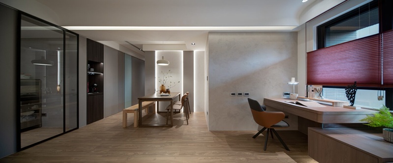 - 共享空間:採開放配置,玻璃拉門獨立廚區,確保光感與油煙控管兼備。
