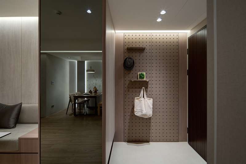 - 玄關機能:洞洞板結合雙向櫃體,融合收納、展示與鏡面功能,放大玄關坪效。