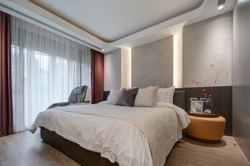 - 臥室設計:主臥延續塗料語彙,形塑靜柔安穩的臥眠氛圍。