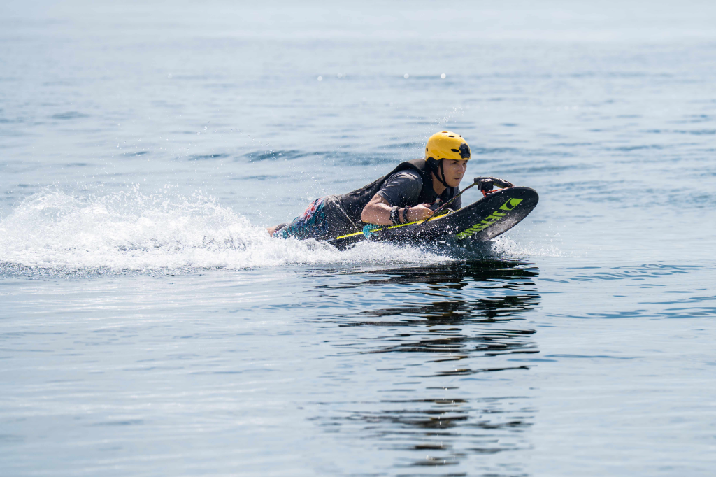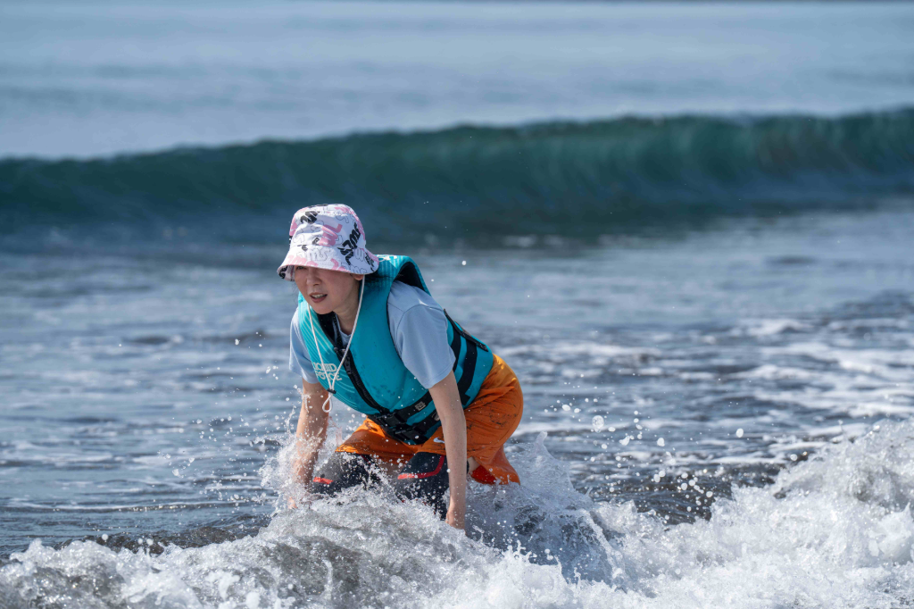身為宜蘭人的王仁甫,帶領大家體驗噴射動力衝浪板。伊正作為領頭羊,從趴著滑行到嘗試站起身時,引擎卻突然熄火,讓他直接栽進海裡!不斷重新發動引擎也無力回天,伊正事後坦言:「當時離岸邊有點遠,心裡其實蠻害怕的,因為我很怕深海。起初有點猶豫要不要下海,但還是硬著頭皮上去了。還好最後有驚無險,教練趕緊來救援,也算是達成了我對衝浪的想像。」況明潔體驗時則大讚好玩,但浪打到胸部卻也好痛。反觀經驗豐富的王仁甫,立刻站在板上衝浪一段距離,讓眾人驚呼連連。