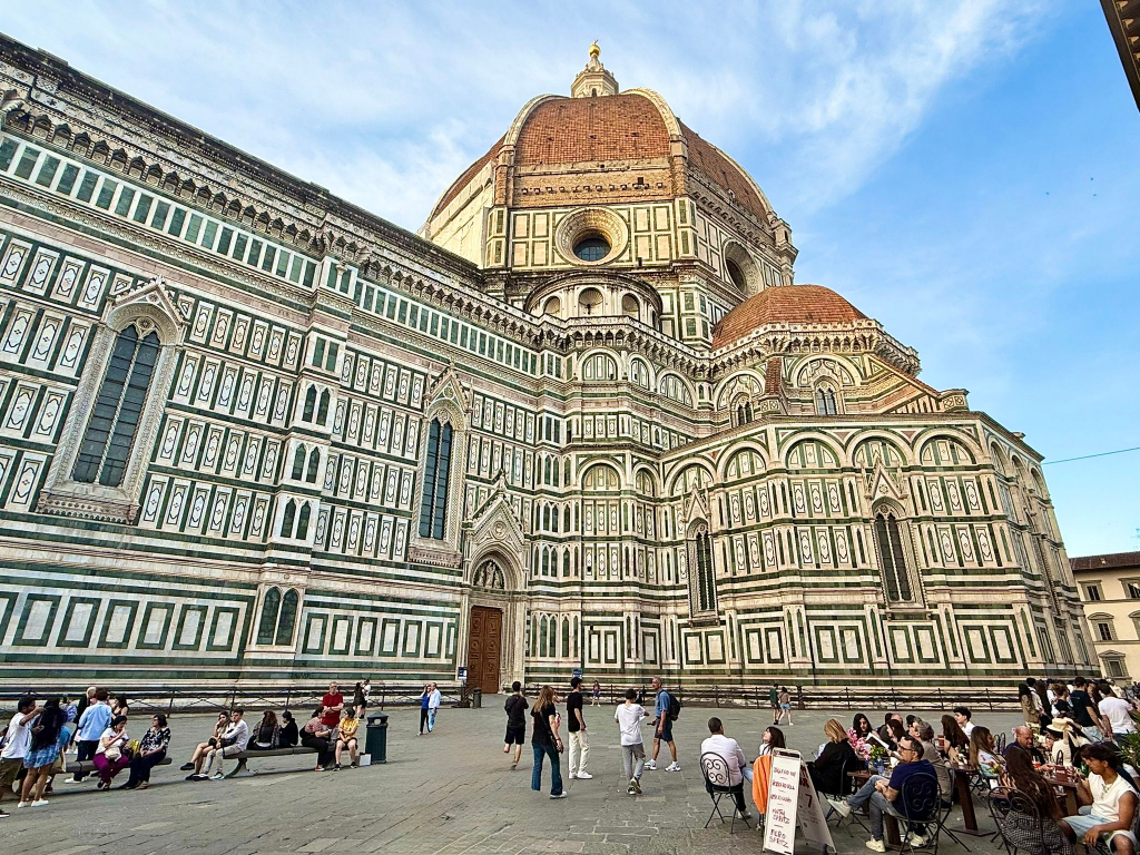 站在佛羅倫斯的聖母百花大教堂前,那細緻的大理石外牆與紅色圓頂,是文藝復興的靈魂化身,一眼望進去,像是走進達文西與米開朗基羅的夢境。