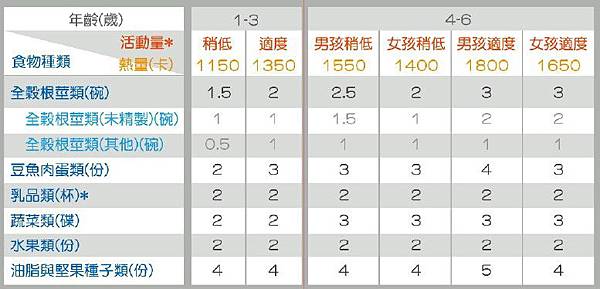 以上資料取自行政院衛生署食品藥物管理局所製作的幼兒期營養衛教單張。