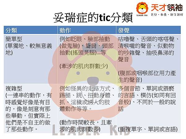 妥瑞症的tics可以分為簡單型和複雜型兩大類: