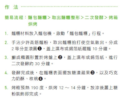 簡易流程:麵包麵糰>取出麵糰整形>二次發酵>烤箱烘烤