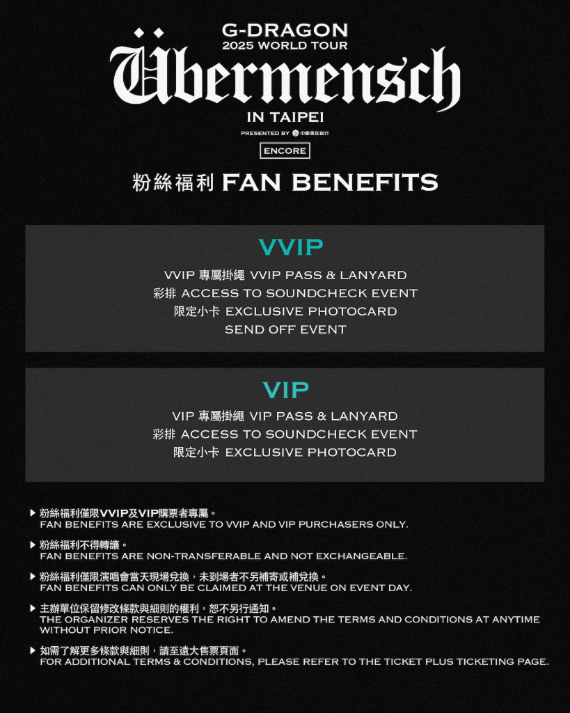 【G-DRAGON 2025 WORLD TOUR [Übermensch] IN TAIPEI : ENCORE, presented by CTBC Bank】