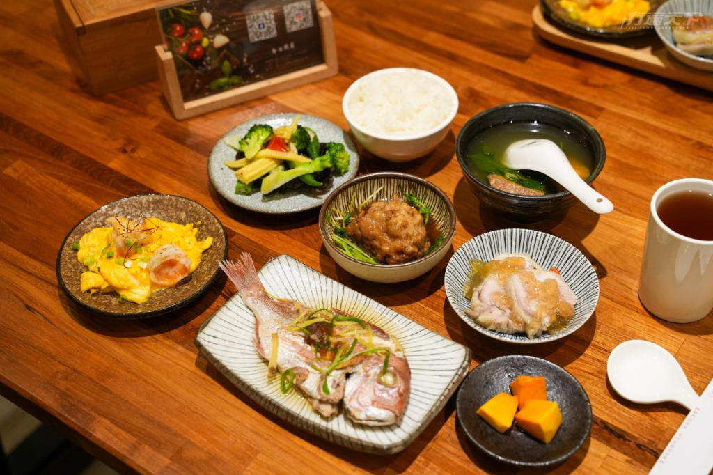 採訪當天因用餐人數未滿三人,餐點以套餐形式供應:清蒸盤仔魚肉質細緻;年菜熱門的獅子頭和仿土雞腿醃製的醉雞,都是傳承自媽媽掌勺時就大受好評的招牌菜;滑蛋蝦仁保留蝦子原有的鮮甜與彈性,口感不輸明蝦。