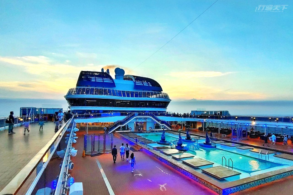 ▲ 在郵輪上的跑道運動、泳池玩水,享受夕陽光影,就是最愜意的旅行啊!