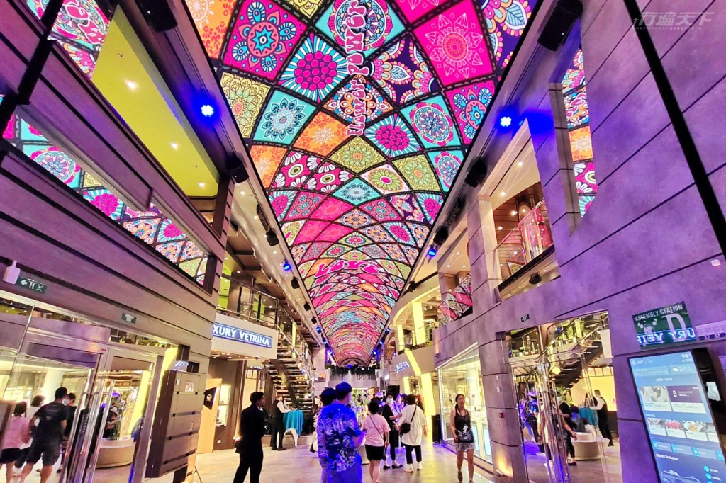 ▲ MSC榮耀號Bellissima郵輪上的「榮耀大道」,兩側設有購物和餐廳。而穹頂是一條長約80米的LED天幕長廊,上演各種天幕秀相當吸睛。