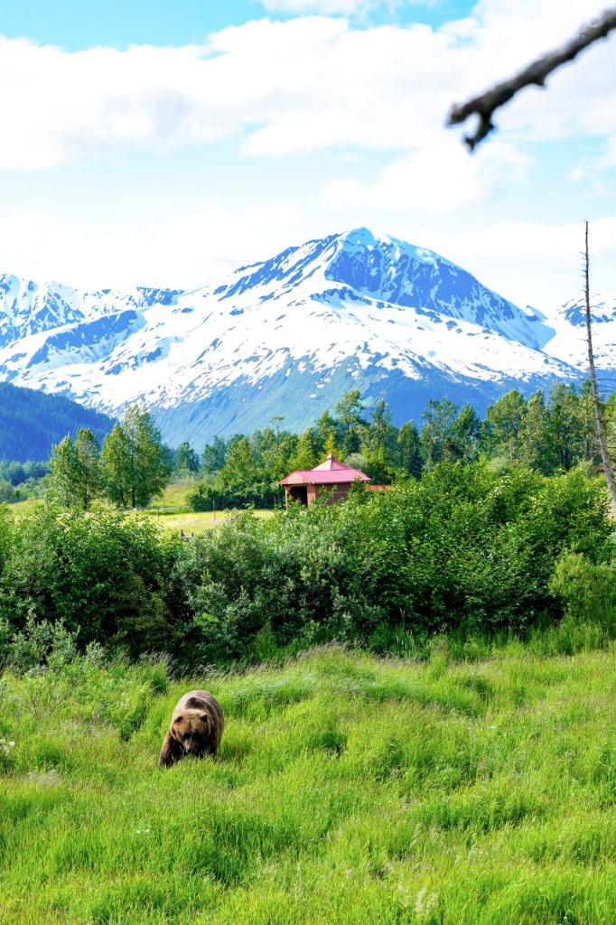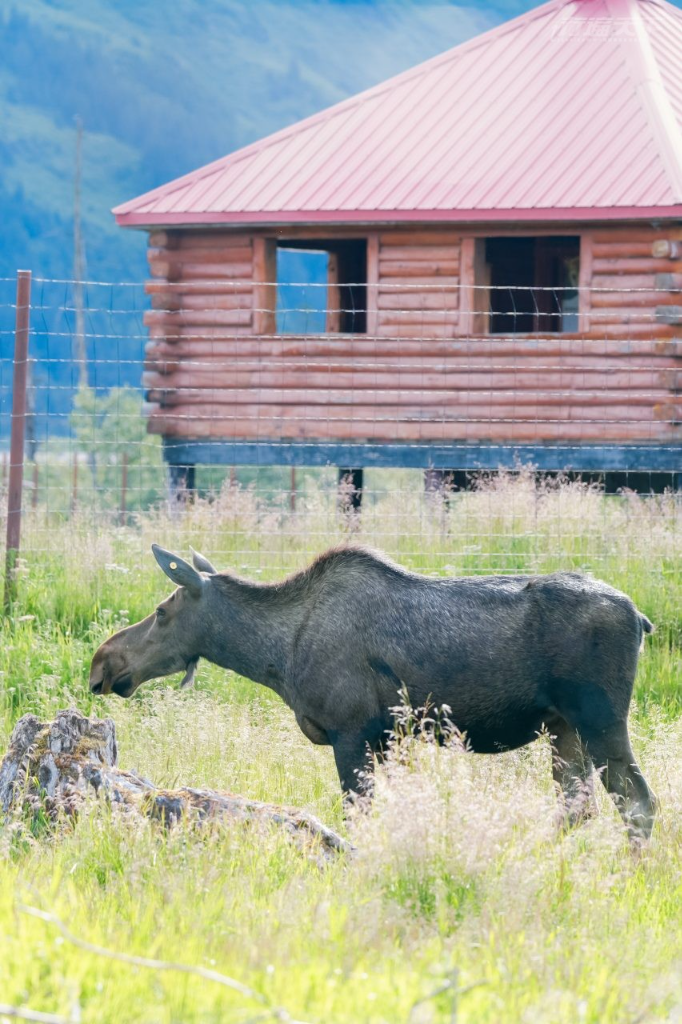 在惠蒂爾(Whittier)與郵輪道別後,開始了這趟旅程的內陸篇章。惠蒂爾原是楚加奇原住民通往威廉王子灣的陸路港口,1943年二戰期間,美國陸軍於此設立Camp Sullivan軍港與鐵路支線作為後勤之用。出港後不容錯過的參觀景點是阿拉斯加野生動物保護中心(Alaska Wildlife Conservation Center),這個非營利性動物庇護園區專門照顧阿拉斯加境內受傷或被遺棄的野生動物,遊客能近距離且安全地觀察棕熊、駝鹿、麝香牛與北極狼等動物,並設有解說導覽與教育體驗活動,開放式的園區讓動物保有最原始且不被打擾的活動範圍,讓第一次見到野生巨大棕熊與駝鹿的小小冒險家們驚嘆不已。