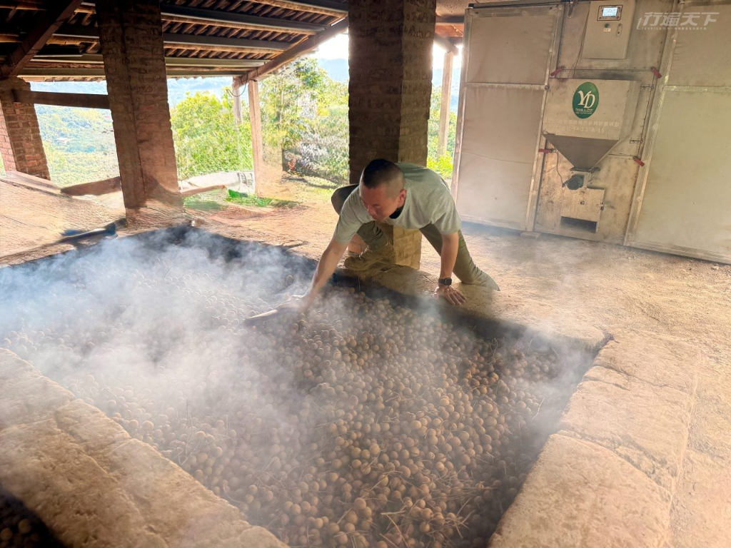 ▲ 柴焙龍眼乾過程,會不時冒出高溫煙霧,讓農民嗆到流淚流汗,農民都號稱這個「耕煙」是最流目油的工作。