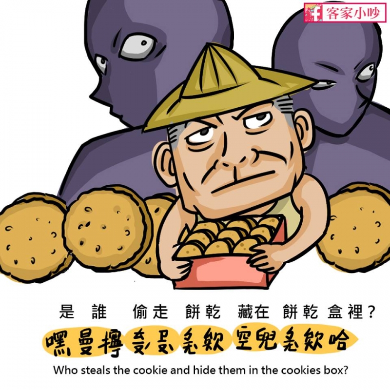 客語原文:係麼人偷走餅仔囥著餅仔盒
