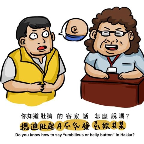 客語原文:你知「肚臍」个客家話仰仔講無?