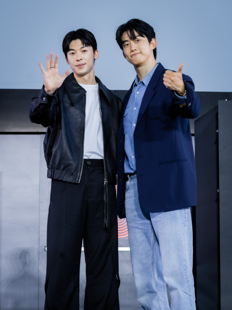 許光漢平時主要身份是演員,但偶爾也切換歌手身份演唱,與演歌雙棲的玉澤演有許多共通點,主持人特別提到兩人另一個相似之處——獲譽「初戀男神」封號。許光漢因《想見你》掀起亞洲熱潮,玉澤演則在《為你心動》與《我奪走了公爵的初夜》等作品中,以獨特戀人角色圈粉無數。被問到如何看待這個標籤,兩人皆笑說或許正因為角色中那份純粹與真摯的情感,才讓觀眾留下深刻印象。