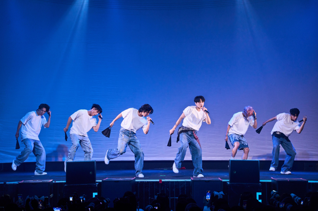 他們一口氣要唱跳滿15分鐘,展現成員驚人的體力和舞技,但是一結束,6人都忍不住氣喘噓噓說:「哇~真的太累了!」乾脆直接坐在地上休息,逗得粉絲大樂。