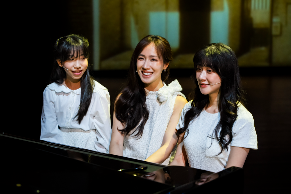 ▲ 左起高靚、小薰、林逸欣,三人合力完成「三人六手聯彈」。(圖:全民大劇團)