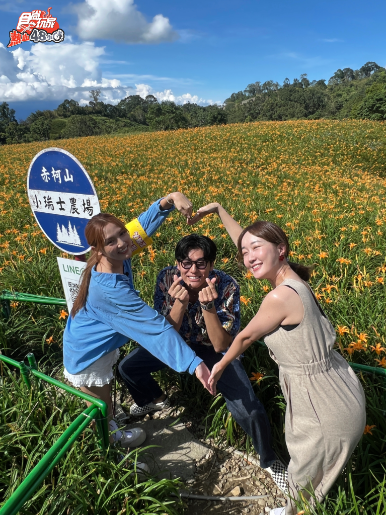 ▲ 朵拉(左起)、風田和巴鈺前往赤科山,尋找夢幻金針花田。(圖:TVBS)