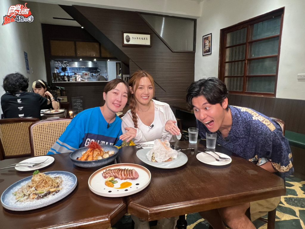 ▲ 風田(右起)、朵拉、巴鈺在花蓮進行吃飽飽、錢有找的挑戰。(圖:TVBS)