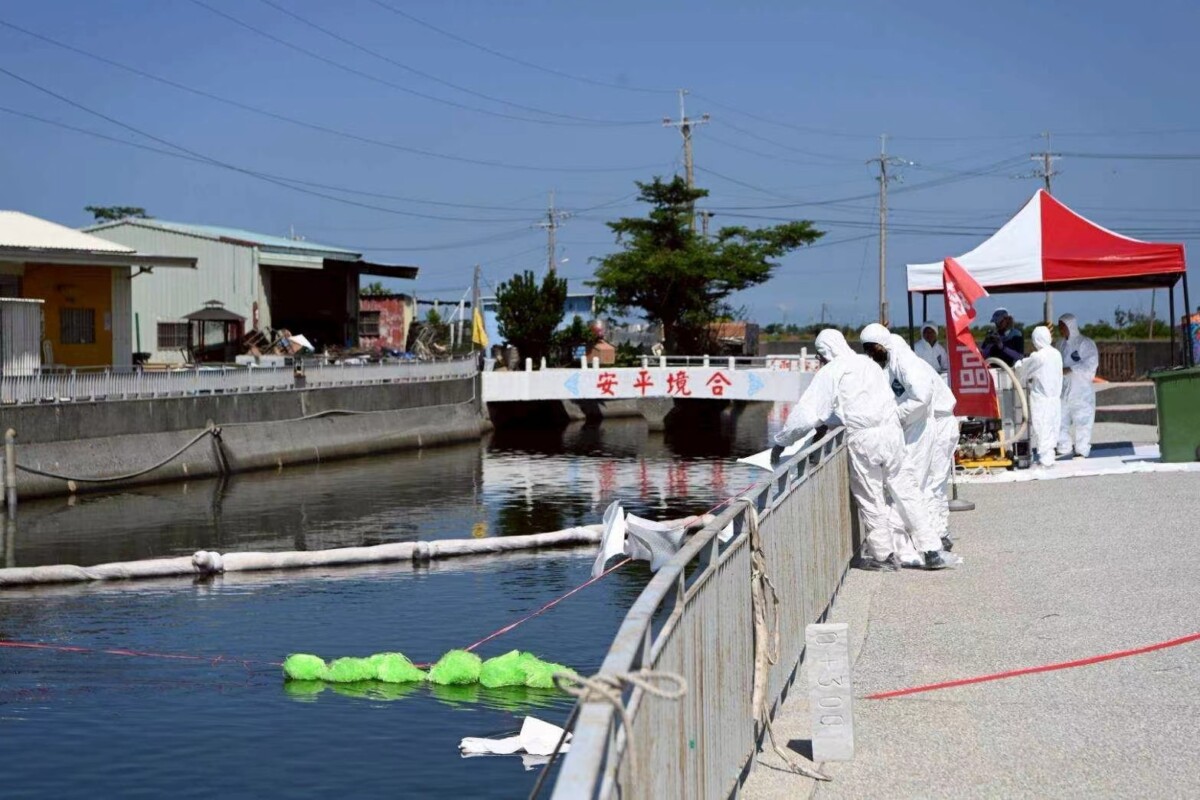 圖:為強化突發水污染事故的即時應變與跨單位協作能力,嘉義縣政府於布袋鎮新塭王船碼頭舉辦「114年南區水污染緊急應變演練」,邀集縣府各局處及台灣中油、布袋鎮公所等共8個單位參與,實兵實境推演。(記者吳瑞興翻攝)