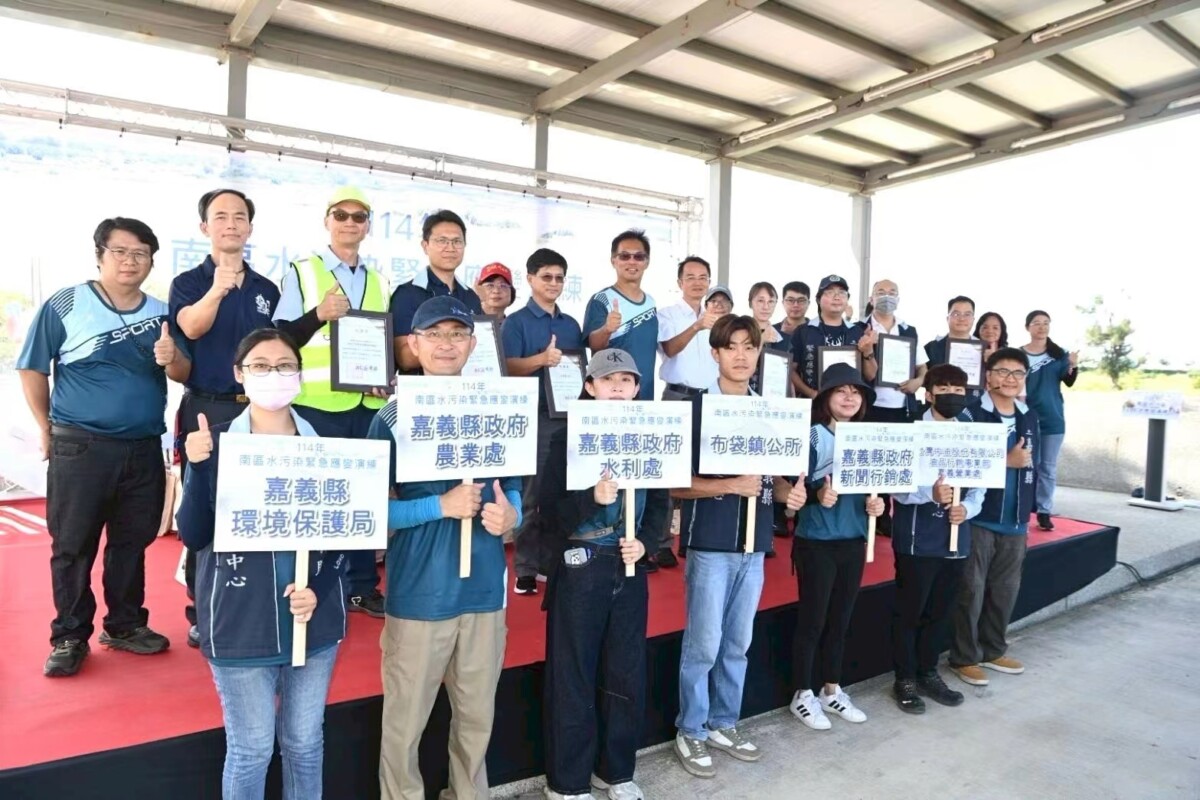 【記者 吳瑞興/嘉義縣 報導】為強化突發水污染事故的即時應變與跨單位協作能力,嘉義縣政府於布袋鎮新塭王船碼頭舉辦「114年南區水污染緊急應變演練」,邀集縣府各局處及台灣中油、布袋鎮公所等共8個單位參與,實兵實境推演,全面檢視多單位橫向聯繫與資源整合效能。