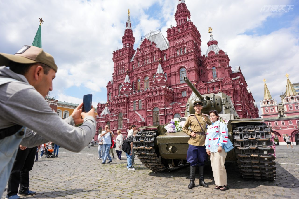 要怎麼證明紅場是莫斯科的心臟地帶?請在當地打開電子地圖,你會發現GPS定位飄得不像話!一下在東南,一下又順移西北,傳說是官方為防止無人機攻擊,施放干擾訊號所致。2025年恰逢二戰結束80週年,俄羅斯正大肆慶祝這名為「偉大的衛國戰爭」勝利紀念,造訪當天,整座紅場變身露天展覽館:蘇聯紅軍的坦克、飛機、大砲四處安放,一旁還有穿著二戰軍裝的專人跟遊客合影。舞台上,男兵女兵激昂地唱著勝利之歌,齊聲吼出「烏拉!」但最讓我印象深刻的,卻是那每個映入眼簾的上揚嘴角。