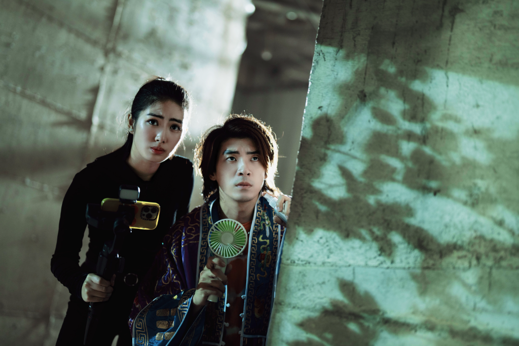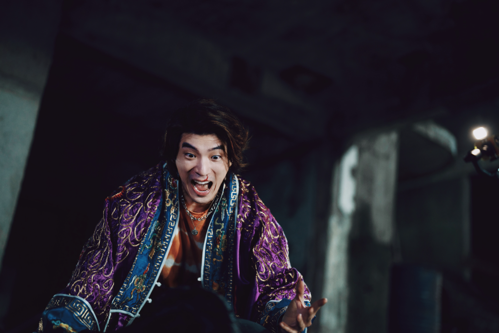 ▲ 林哲熹在新片《叫我驅魔男神》片中飾演魯蛇湯仔,沒有繼承驅魔大師爺爺湯震的祕法,反而經營直播專賣各種荒謬驅魔神器。(圖:光盛影業)