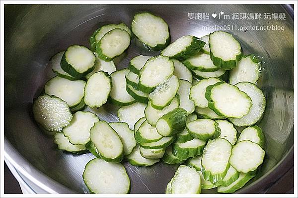 她就迫不及待地,我都還沒拍照,小黃瓜就已被切完了!!
