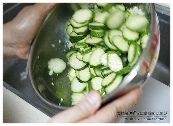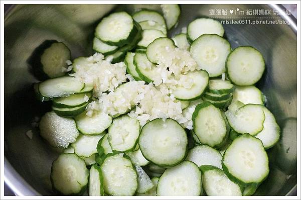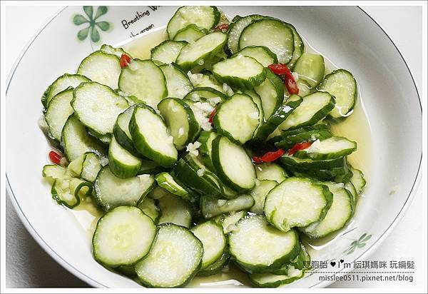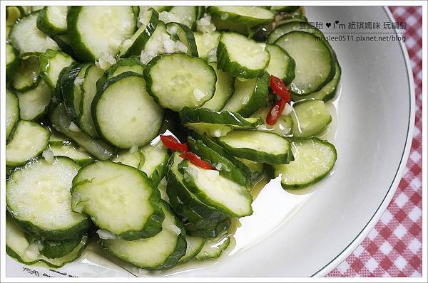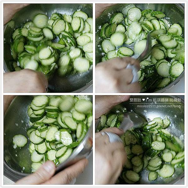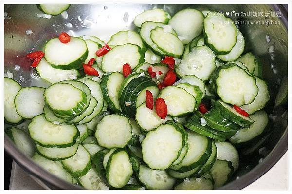 就可以像我媽這樣,上下搖晃均勻攪拌,讓每片小黃瓜都有吃到酌料這樣~
