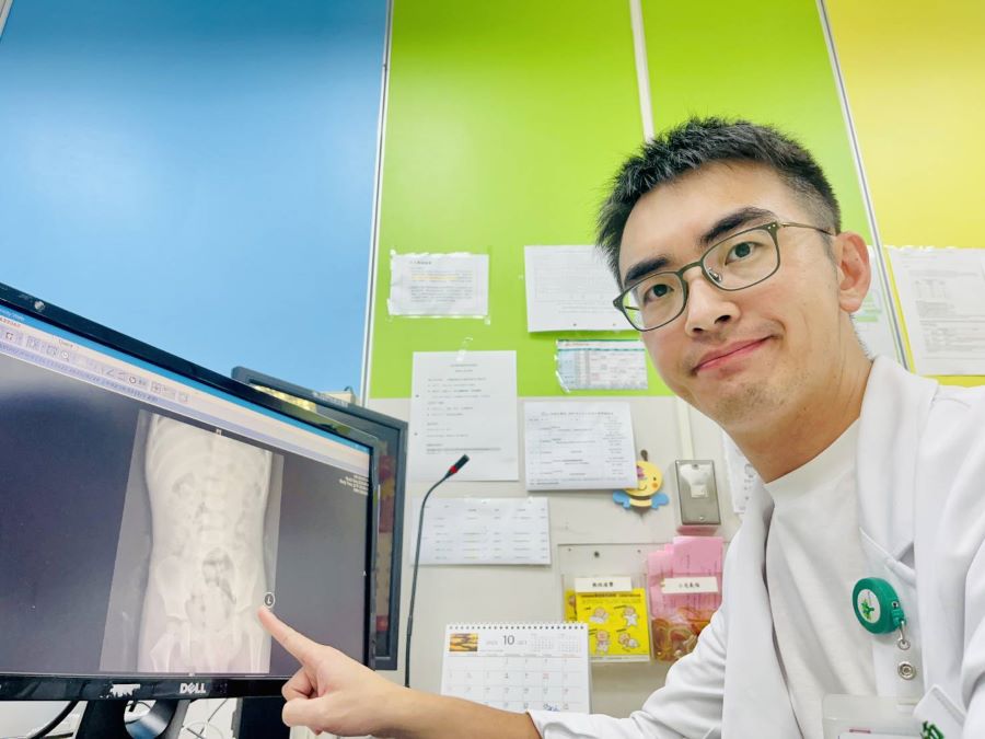 ▲11歲男生X光片,畫圈部分為積糞。
